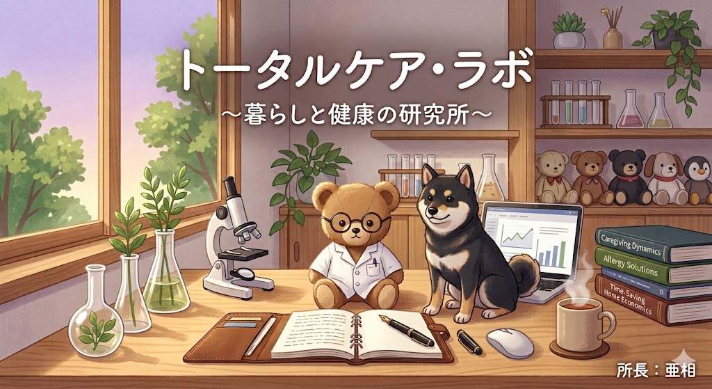 はじめまして、トータルケア・ラボ所長の亜相(あそう)です。元研究職の視点で、介護、アレルギー、時短家事の最適解を研究・発信する場所です。日々の暮らしをよりスマートに、より豊かにするための情報を積み上げていきます。TOTAL-care-lab...